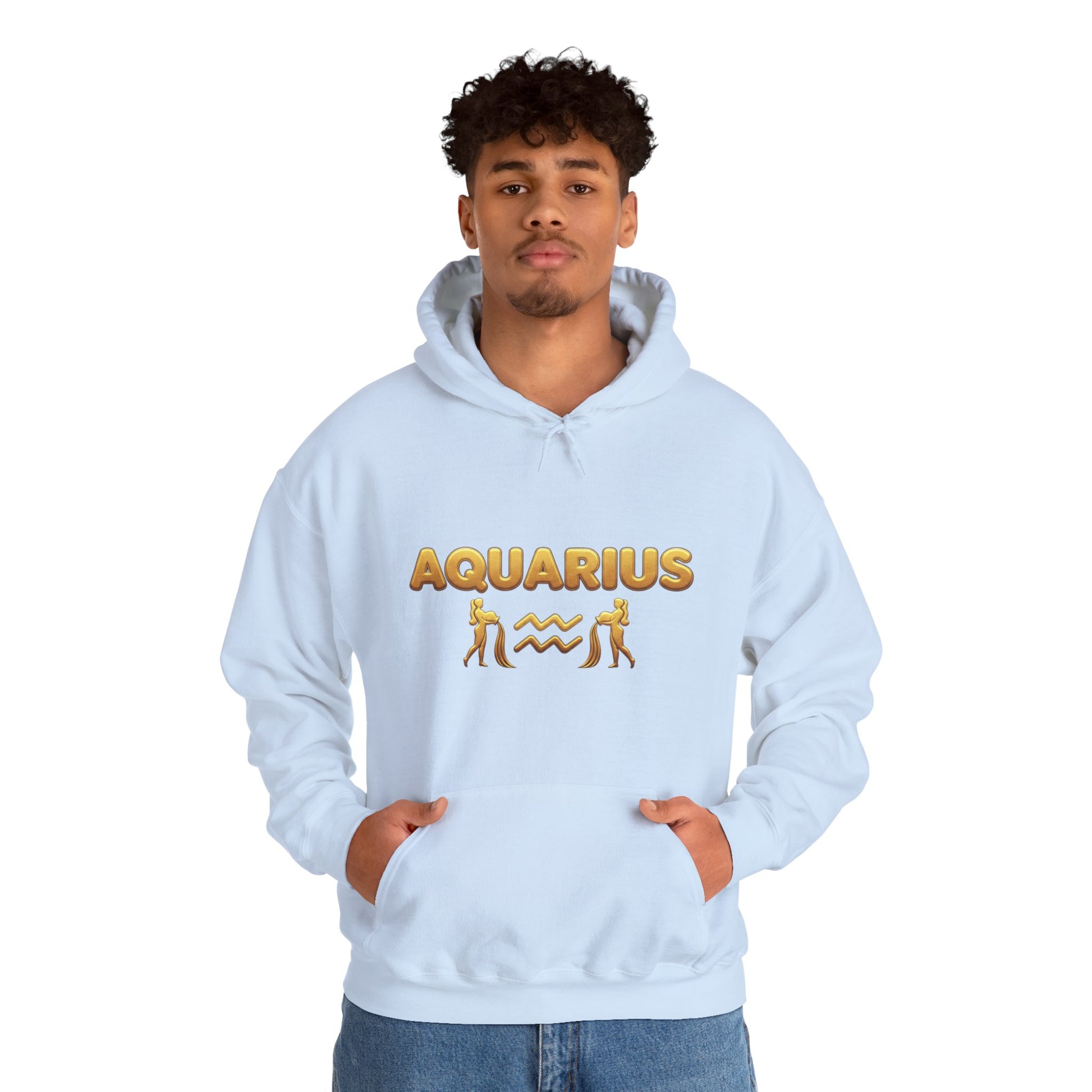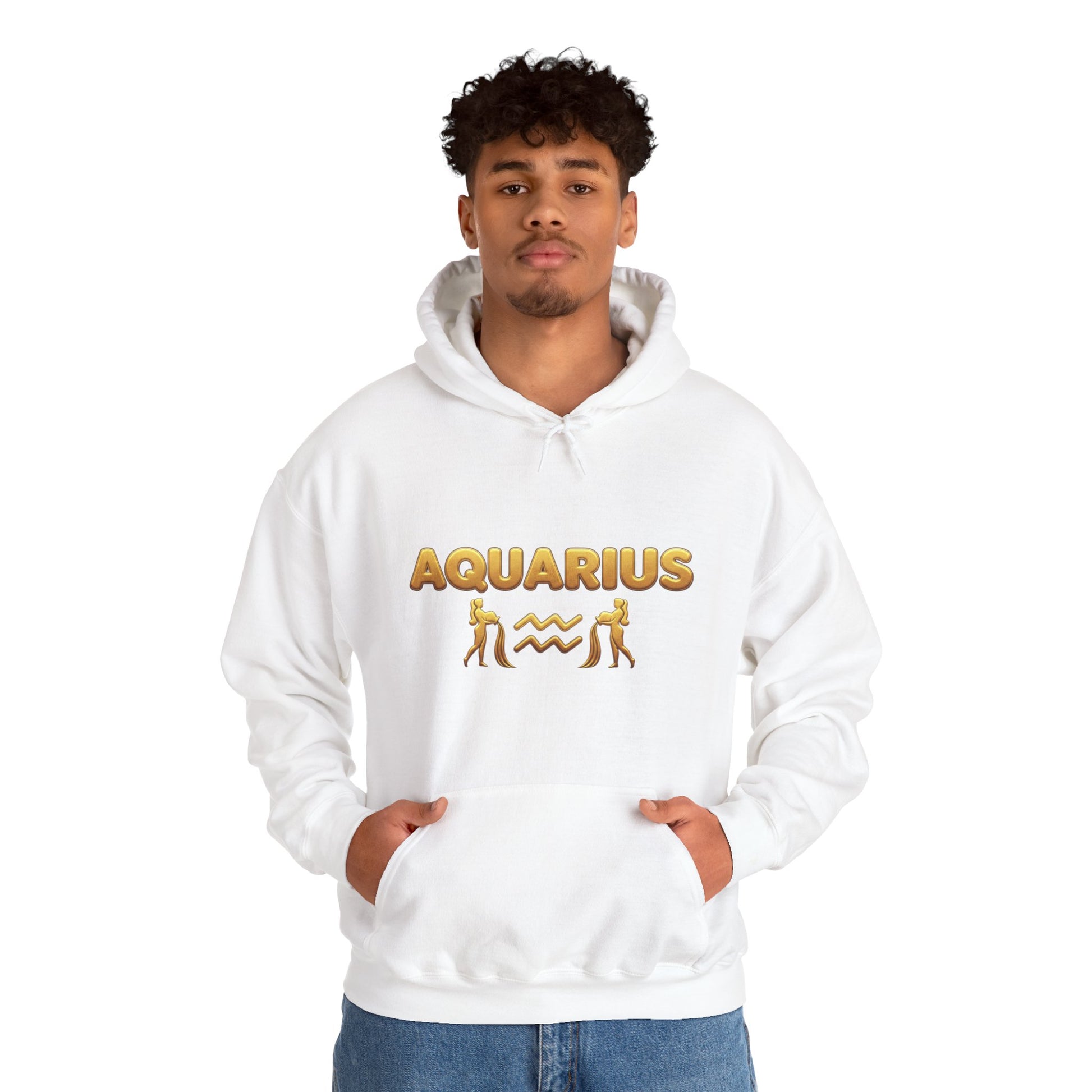 Aquarius Zodiac Hoodie — Gold Astrology Graphic Hooded Sweatshirt