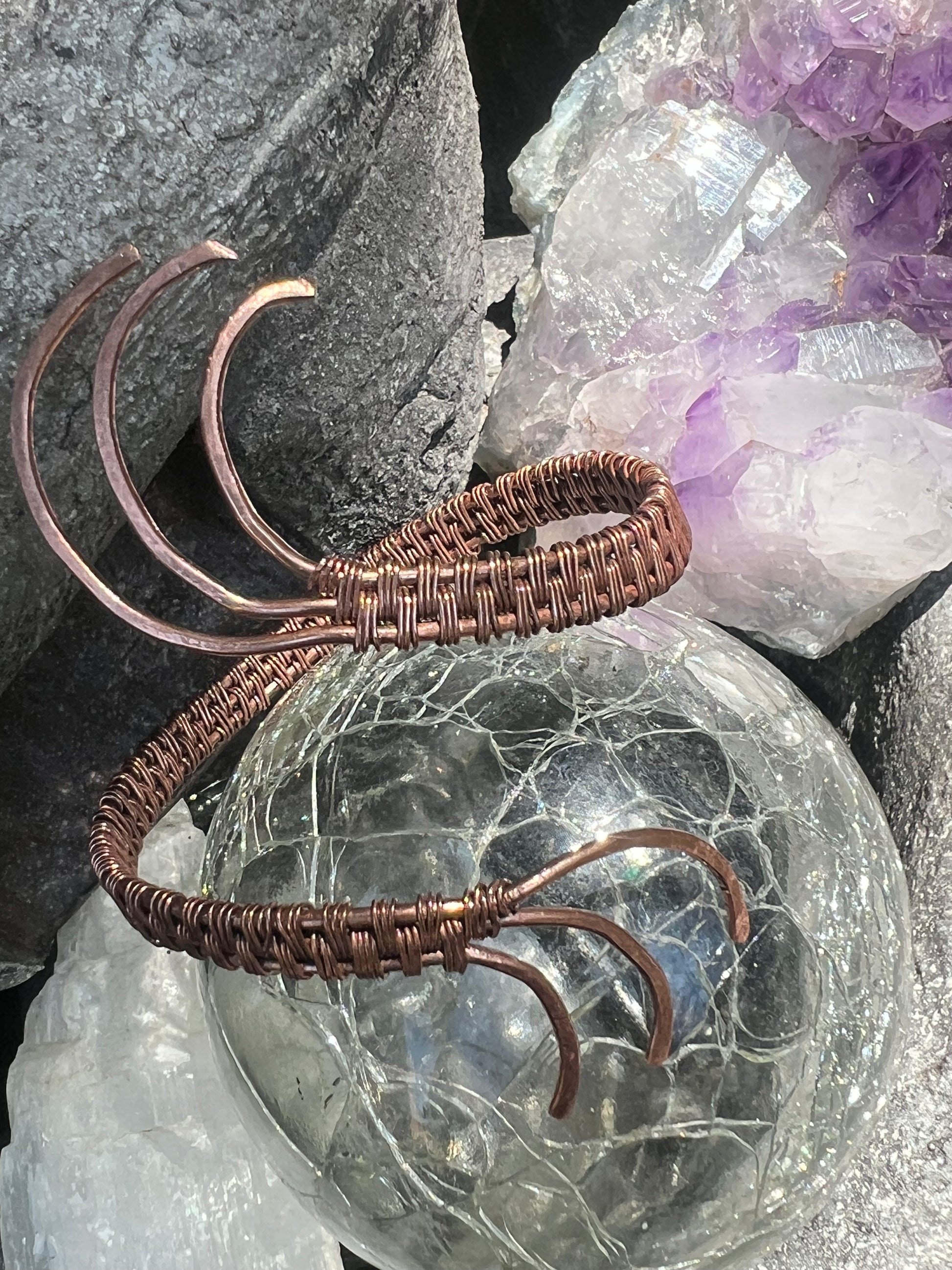 Handmade with precision, the **Pure Copper Wire Weave Wrist Cuff** showcases the beauty of detailed wire artistry. Each strand of copper is carefully woven into an intricate pattern, creating a piece that is both strong and elegant. The natural warmth of pure copper gives the cuff a rich, earthy glow that complements any style.