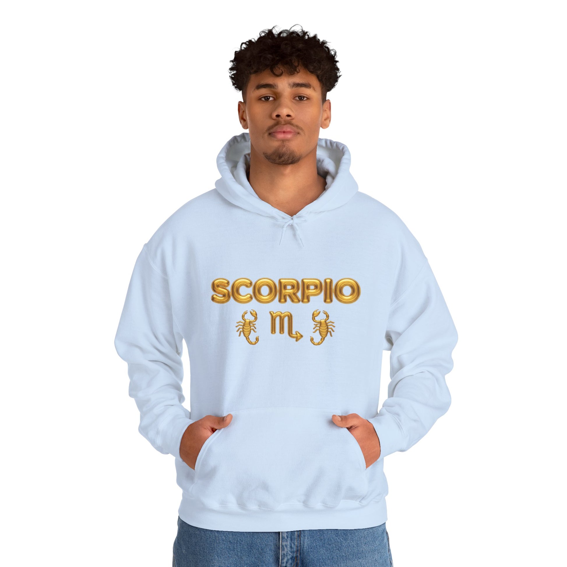 Scorpio Zodiac Hoodie – Gold Scorpion Astrology Sweatshirt (Back Zodiac Chart)