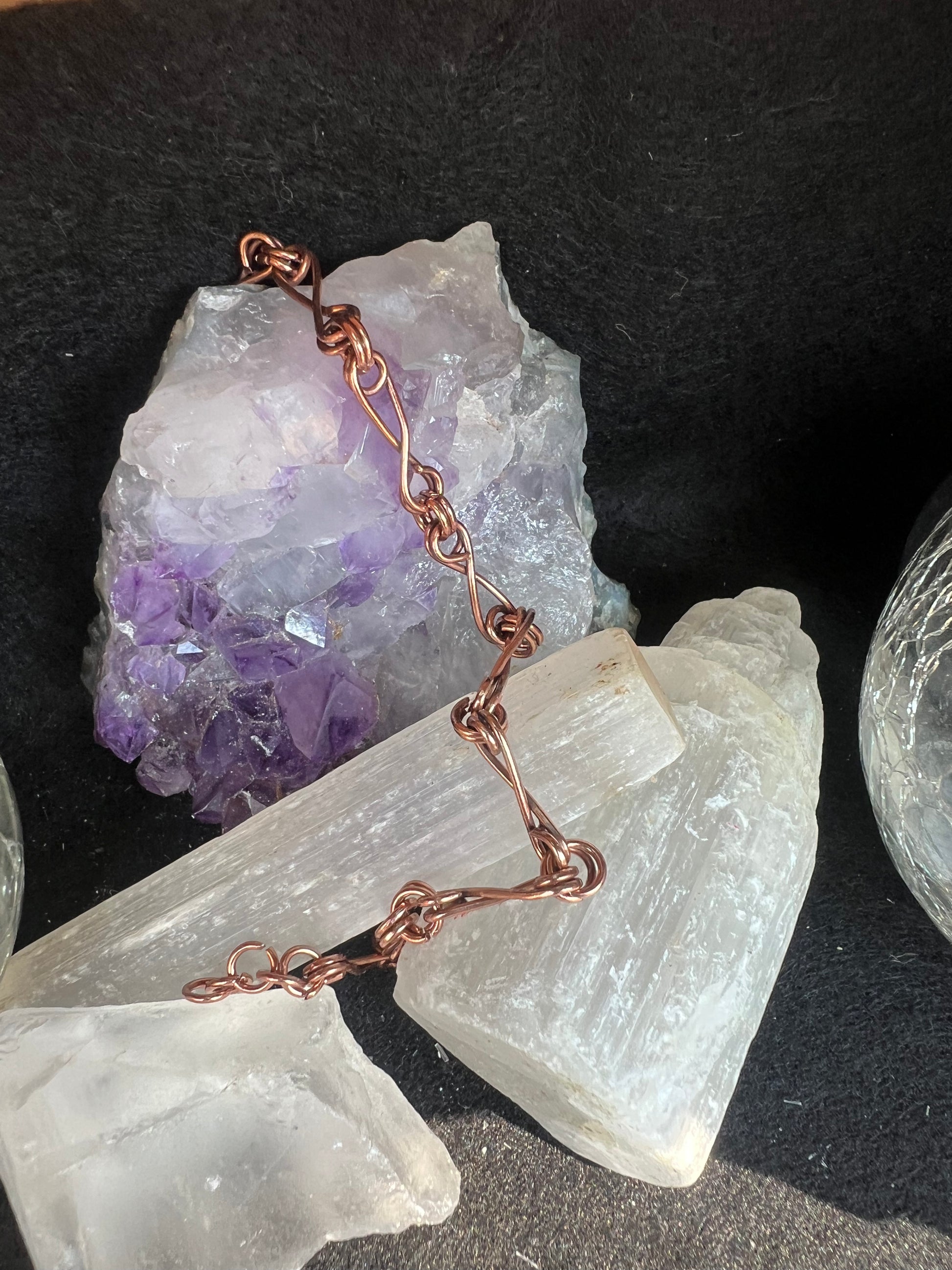 This anklet is a minimalist expression of craftsmanship, designed to highlight the natural beauty of copper in its purest form. Made from **simple, elegant copper links**, each one is **individually handmade**, giving the piece a subtle uniqueness and artisanal charm. Its lightweight design makes it comfortable for everyday wear while still carrying the warmth and character of handcrafted jewelry.