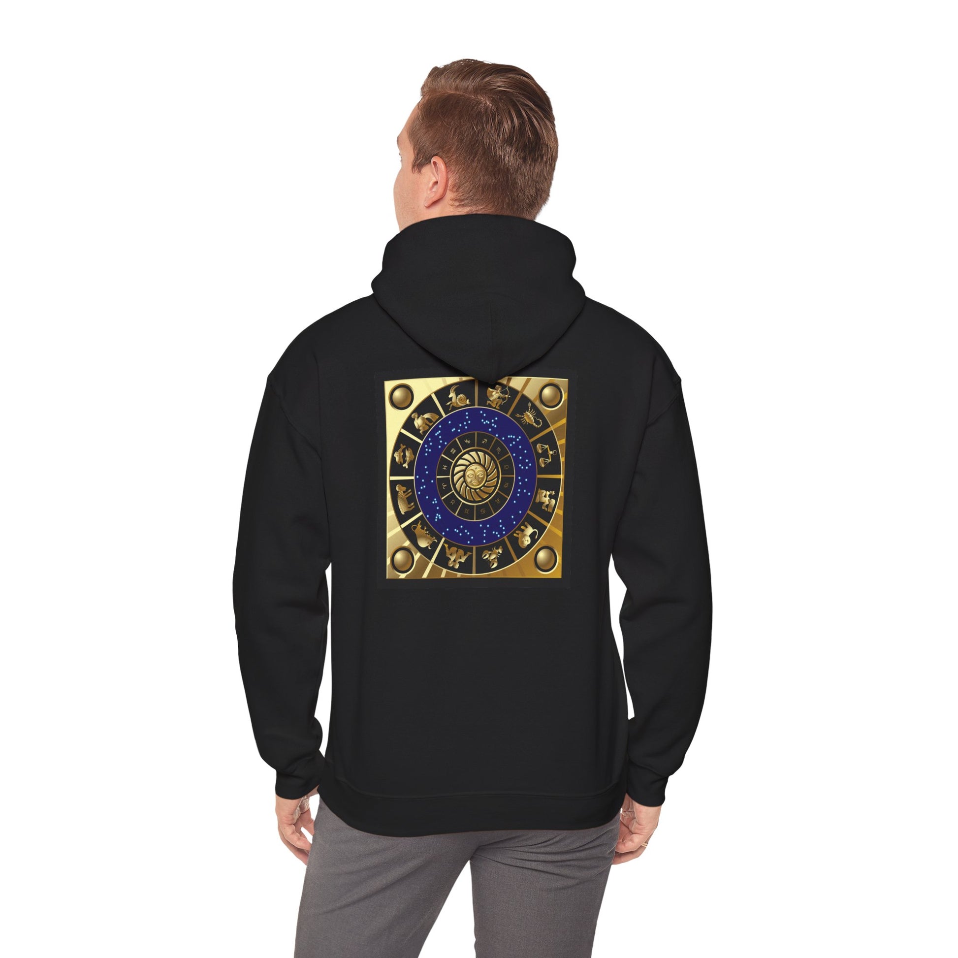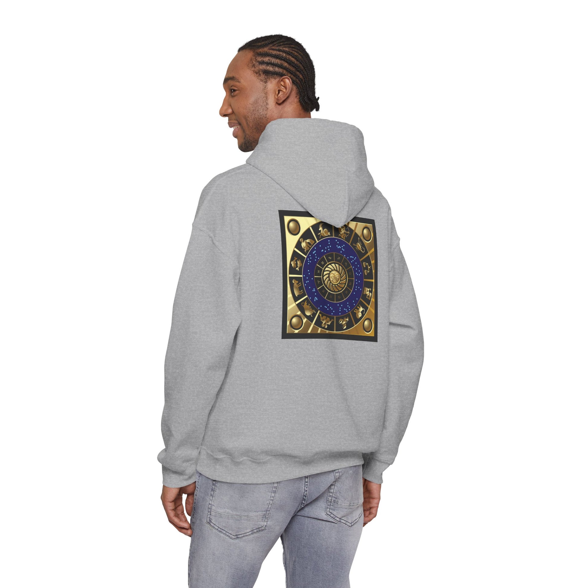 This cozy hooded sweatshirt carries a quiet, confident energy for anyone who lives by the stars. The front features a subtle, polished Capricorn script and glyph in warm metallic tones. On the back, a detailed zodiac wheel anchors the piece — deep blues and burnished golds that catch light and draw the eye. Wear it on late-night walks, while journaling your goals, or layered for weekend coffee runs. The fit is relaxed and comfy, with a roomy pouch pocket and double-lined hood that feel lived-in from day one. It’s more than a hoodie — it’s a soft, wearable nod to astrology and the steady, determined spirit of Capricorn.
