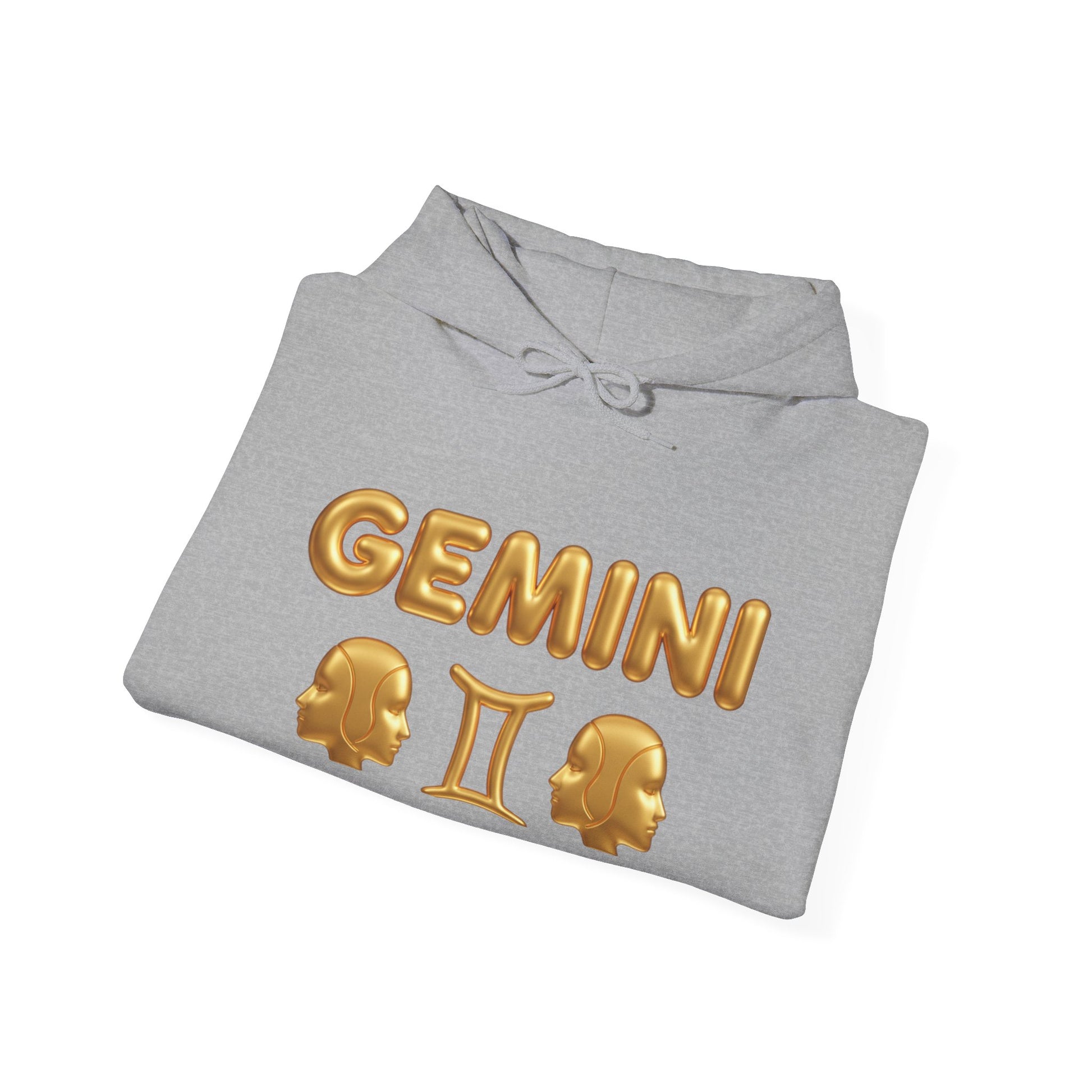 Gemini Zodiac Hoodie – Gold Gemini Text & Astrology Wheel Back Print
