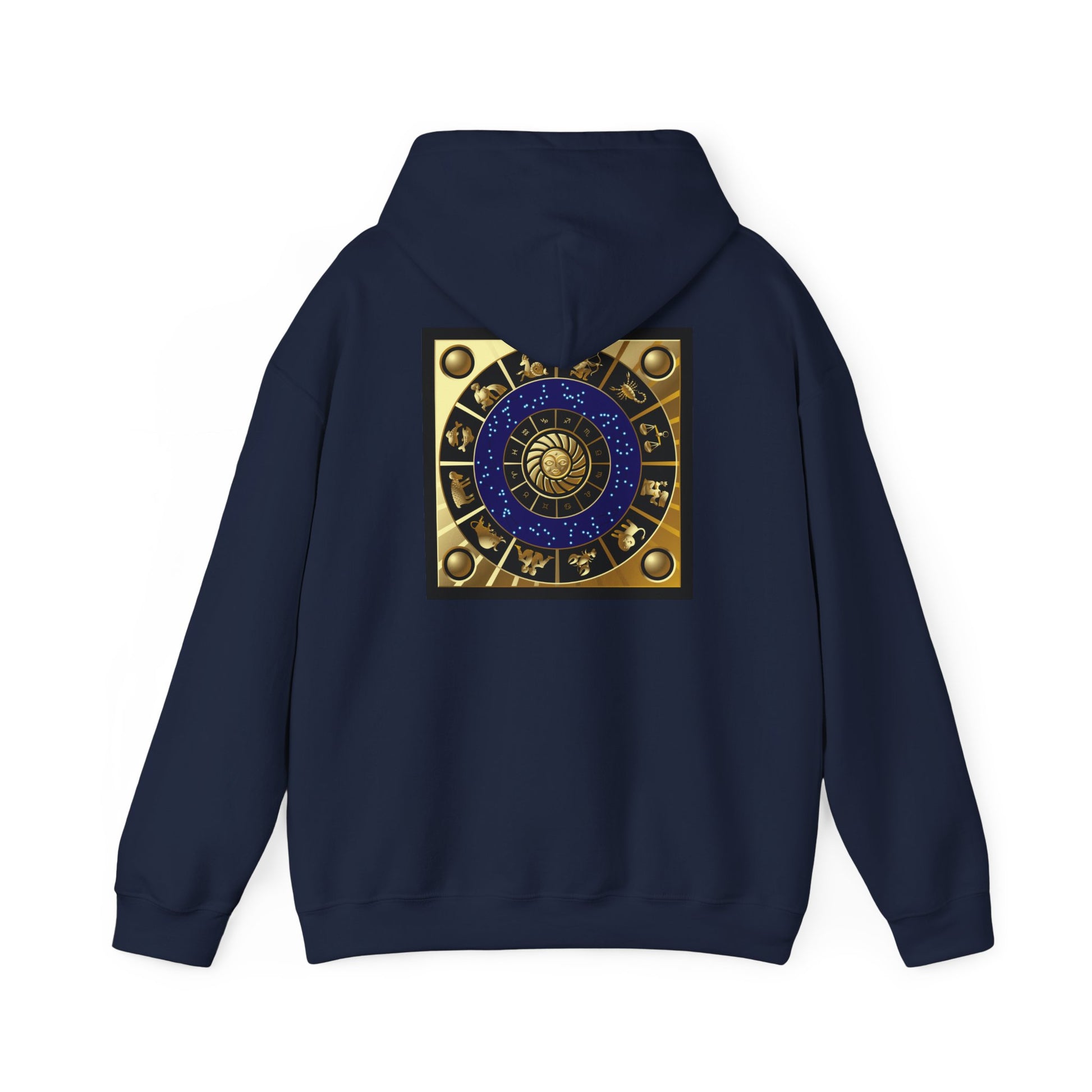 Virgo Zodiac Hoodie — Gold Virgo Sign & Astrological Wheel Pullover